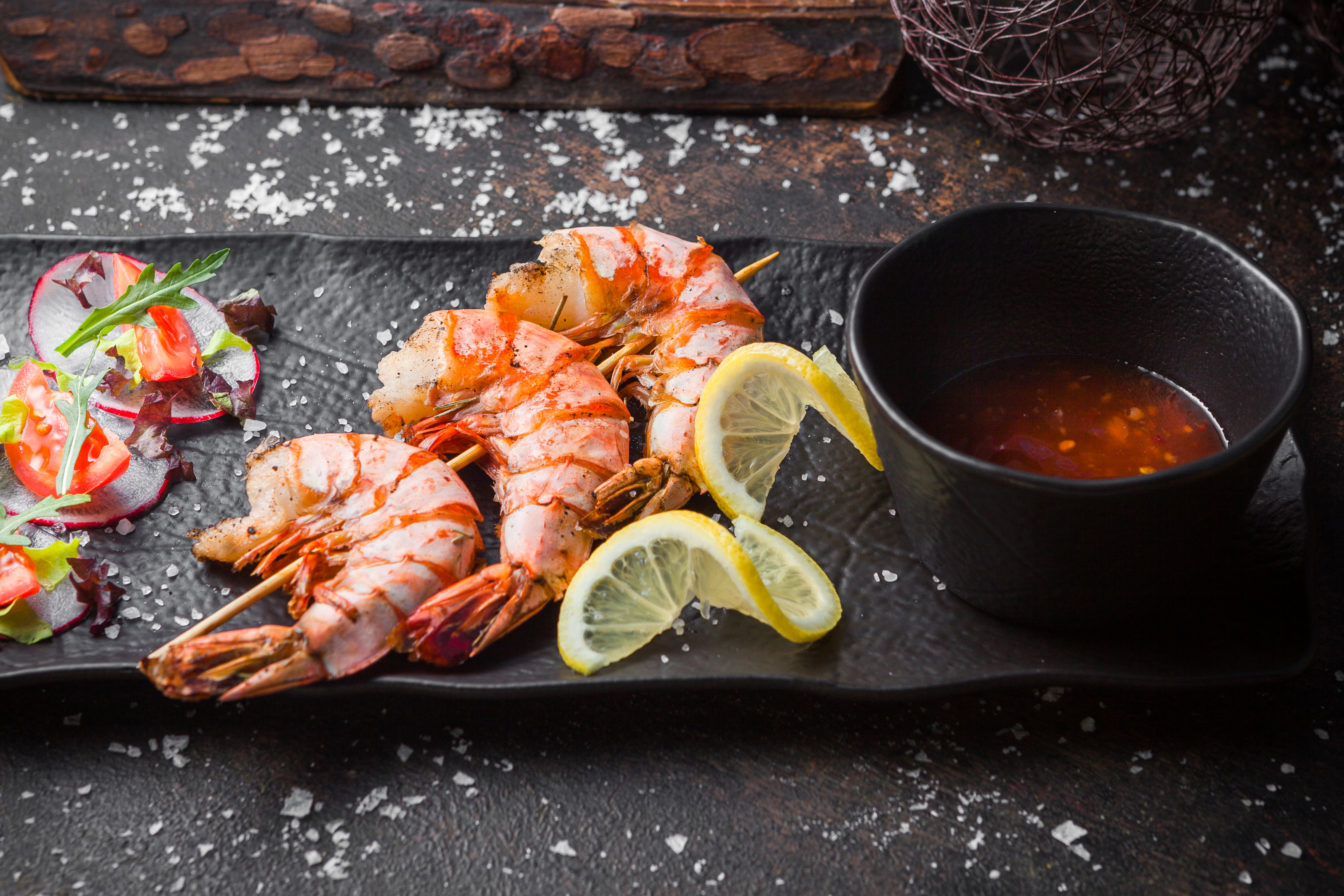 Gamba roja de Huelva cortada a cuchillo, acompañada de una emulsión suave de cítricos y aceite de oliva virgen extra. Servido sobre un crujiente de alga nori que aporta textura y yodo al conjunto.